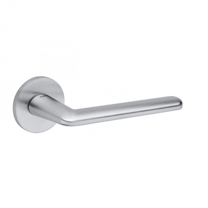Set mâner. Rozete Ø52 mm. Ușor de montat pe adaptor metalic sau plastic. Arc de revenire reversibil. Tijă pătrată 8x100 mm. Mâner fixat cu șurub ascuns M6 cu filet.
